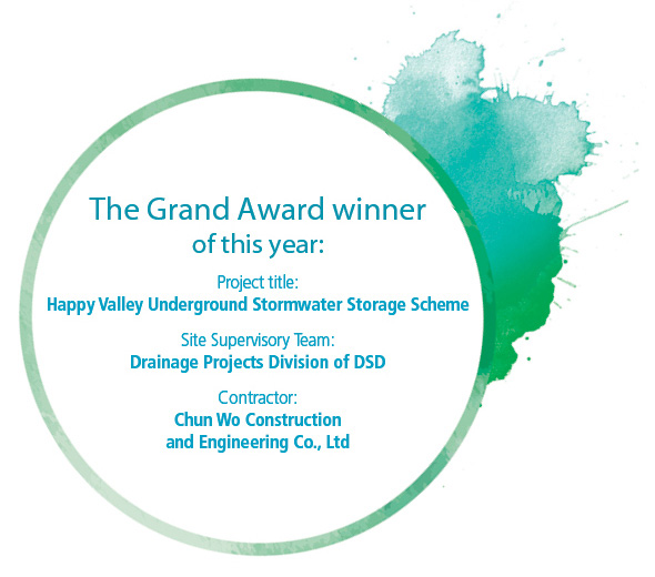 As an appreciation, the former Deputy Director of Drainage Services, Mr H. S. TSE, presented the Grand Award winning team with his hand-written calligraphy scroll, bearing the meaning of “A Role Model in Working with One Heart”.