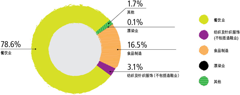 全港约有288万个自来水用户,其中大约266万个用户须缴付排污费。非住宅用户中,约有24,200个用户经营须缴付工商业污水附加费的指定之27类行业之一。工商业污水附加费缴纳户所属行业的分布见下图。
