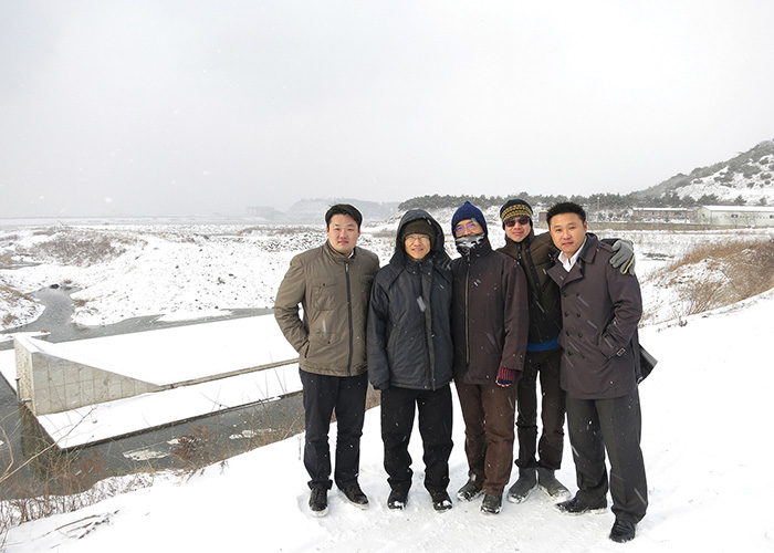 2014年年底,本署同事前赴南韓考察尼龍壩製造廠和兩項相關工程的工地,為日後重建元朗明渠的尼龍壩取經。考察團深入認識製造無縫尼龍壩的最新技術和大型熱壓機,並與尼龍壩工程人員交流,獲益良多。