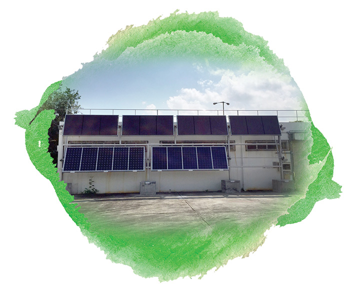 我們現時在轄下設施,包括元朗污水處理廠、石湖墟污水處理廠、沙灣基本污水處理廠、昂船洲污水處理廠,採用了太陽能光伏系統,為廠內設備提供電力。安裝在廠內的太陽能光伏板,總發電容量為153 千瓦,年輸出總電量則為135,000度電。