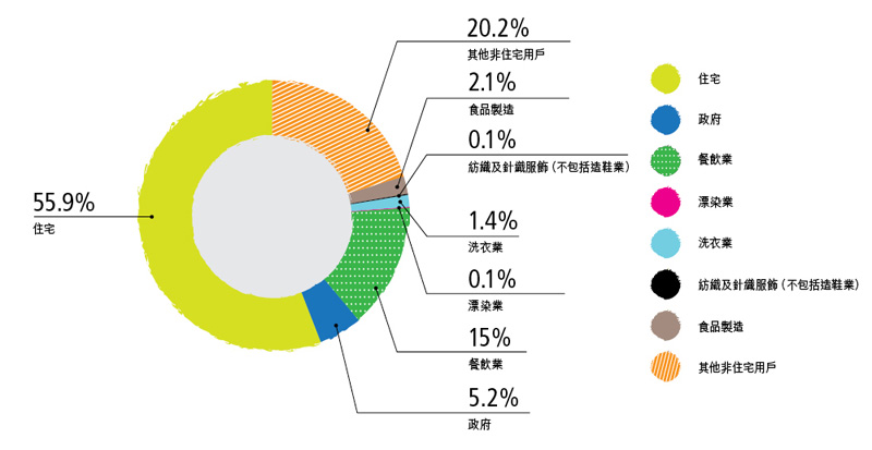 排污費及工商業污水附加費 (1,193 百萬港元) - 2014-15年度用戶種類收費情況