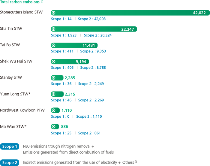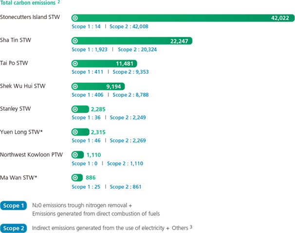| (1) | The above table shows carbon emission data from eight major STWs of DSD. During the reporting period, these eight STWs treated over 50% of sewage processed by DSD. DSD does not conduct carbon audit for its head office for the time being. |