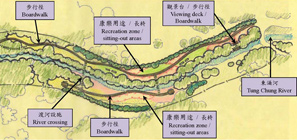 With the Tung Chung New Town extension under way, the Government has seized the opportunity with plans to revitalise a section of the existing Tung Chung River, upgrading its drainage capacity and transforming it into the first river park in Hong Kong. Upon completion, the improvement works will significantly enhance the neighbourhood and promote biodiversity in the river. The river park is poised to be green and water-friendly for residents who enjoy water sports and natural sceneries.