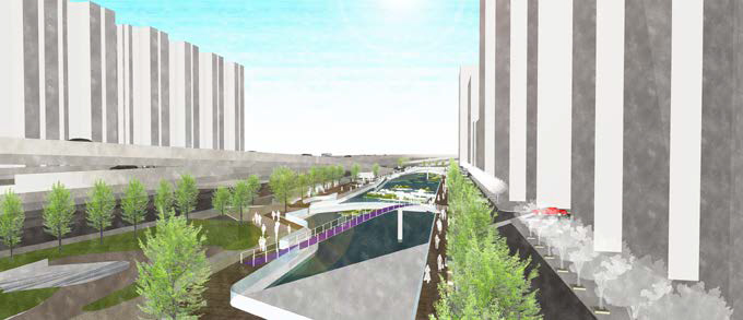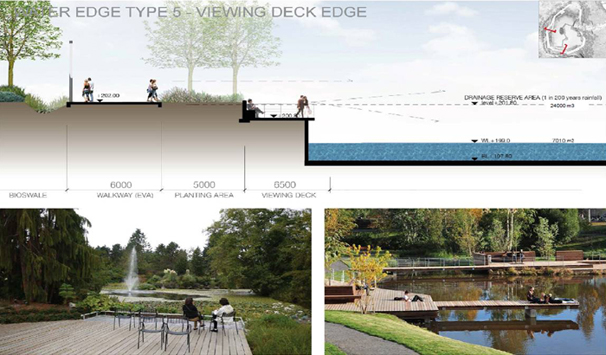 - Build a drainage layout in urban areas that interweaves the natural environment with community characteristics and contemporary functions.