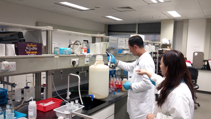 On 1 February 2016, Dr. TANG Tin-wu, our Senior Chemist, was interviewed by several newspapers, during which he sharedthe history and the scope of works of DSD’s laboratory services and its future plans. Dr. Tang also demonstrated the unique Microscopic Examination technique of DSD, which could facilitate enhancement of the sewage treatment process through examination of the behaviour of bacteria in sewage and understand the sewage conditions.