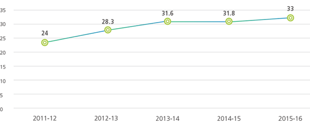 本署员工年内的平均培训时数为33小时,远超过香港人力资源管理学会公布的全港雇员平均培训时数1。