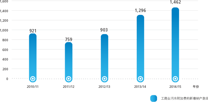 过去5年所发现工商业污水附加费的新缴纳户数目