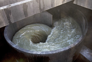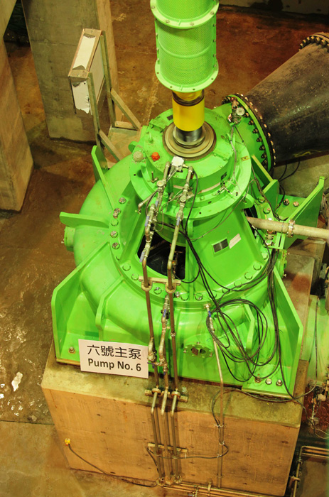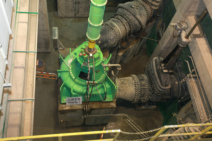 污水到达昂船洲污水处理厂后,主泵房会把污水从深层污水隧道抽到地面进行处理。新的主泵房是全球最大的地下污水泵房之一,直径55米丶深40米。新主泵房内安装了8台大型污水泵,每台泵每秒能输送4立方米污水,相当于只需约1分钟便能填满一个标准游泳池。