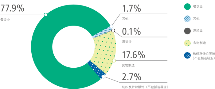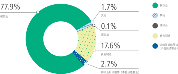 全港约有291万个自来水用户,其中大约269万个用户须缴付排污费。非住宅用户中,约有25,800个用户属于须缴付工商业污水附加费的27个指定行业。工商业污水附加费缴纳户所属行业的分布见下图。