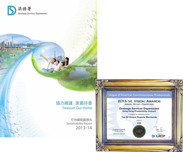 渠务署可持续发展报告2013-14于APEX 2015 Awards,以及美国传媒专业联盟(LACP)主辧的2013/14Inspire Awards 和 2013/14 Vision Awards 中囊括5项殊荣