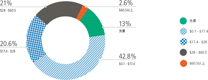 住宅用戶 - 2015-16年度排污費收費情況(港元/月)