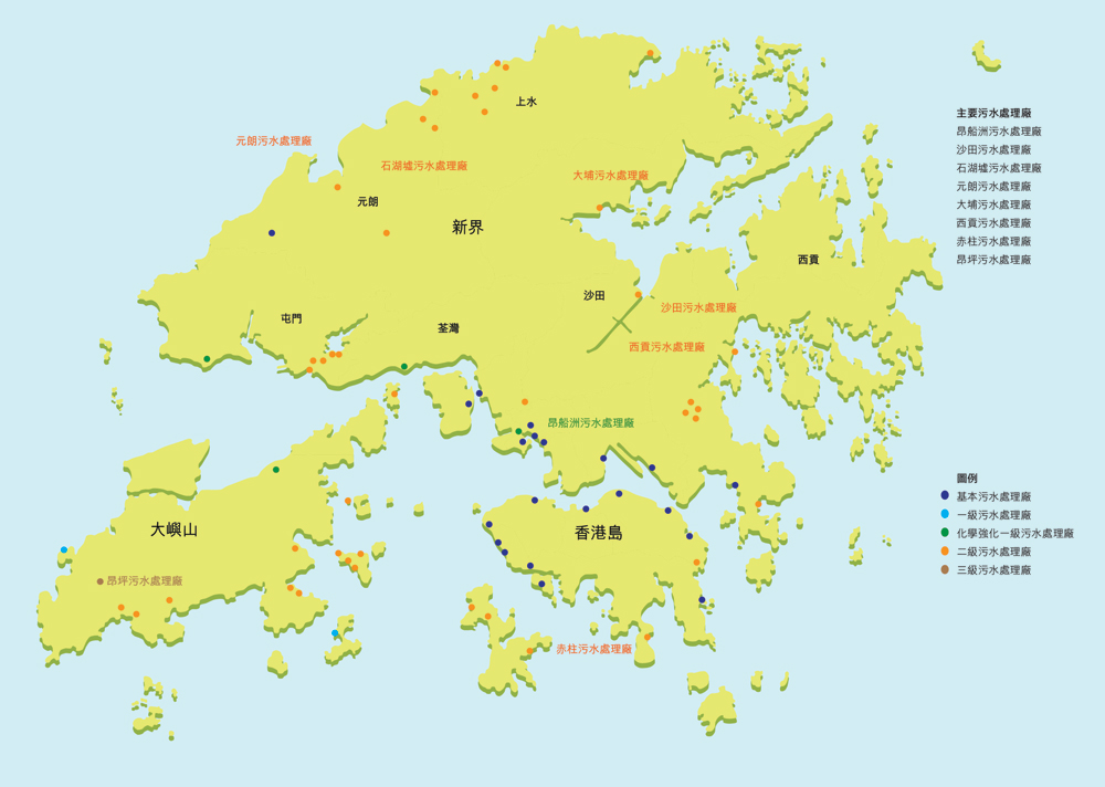 - 改善位於港島北部及西南部合共8 間現有基本污水處理廠