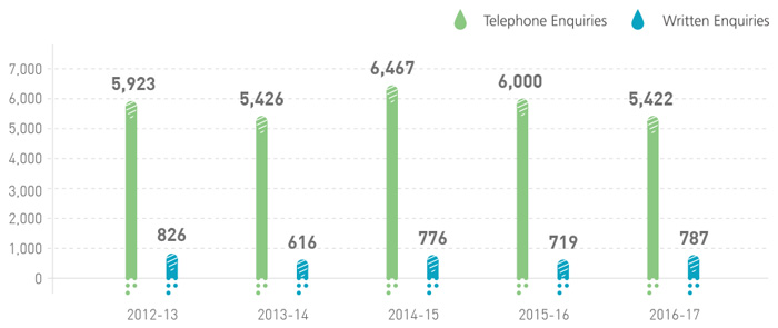 Number of Enquiries about Sewage Services Received for the Past Five Years