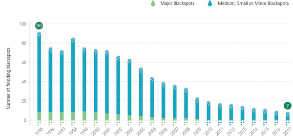 In early 2017, after evaluating the effectiveness of each completed drainage improvement works, we removed the flooding blackspot at the junction of Wong Chuk Hang Road and Nam Long Shan Road, thus reducing the total number of flooding blackspots in the territory from eight to seven.