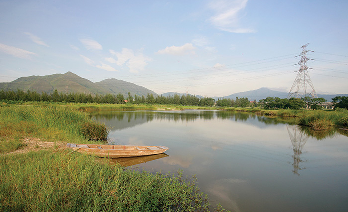 The aim of the Yuen Long Bypass Floodway is to mitigate flooding in Yuen Long Town and its peripheral village areas by intercepting 40% of the runoff in the Yuen Long catchment, and the intercepted flow is diverted to the downstream of Kam Tin River. As some fishponds and agricultural land were affected during the construction of Yuen Long Bypass Floodway, in order to compensate for the ecological losses, we converted 3 abandoned fishing ponds into engineered wetland. The engineered wetland covers an area of 70,000 square metres (equivalent to 10 standard soccer fields), providing a freshwater habitat for wild birds, amphibians (frogs) and dragonflies that depend on the wetland as well as serving as a purification and temporary storage area for stormwater.