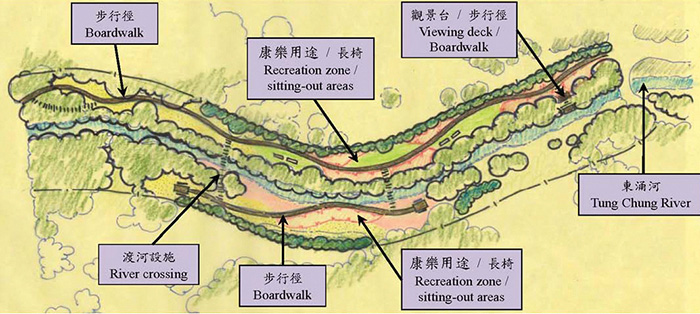 With the Tung Chung New Town extension under way, the Government has seized the opportunity with plans to revitalise a section of the existing Tung Chung River, upgrading its drainage capacity and transforming it into the first river park in Hong Kong. The river park is poised to be green and water-friendly for residents who enjoy water sports and natural sceneries.