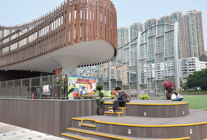 In addition to introducing green building features such as environmentally friendly permeable paving blocks and solar panels in the Stormwater Storage Scheme, we have improved the public leisure area in the Happy Valley Recreation Ground. For instance, a green lawn has been built on the pump house rooftop to serve the purpose of heat insulation and providing a scenic lookout for the public. Also, we changed the traditional box-shaped structural form of the fan room and optimised it by including a canopy design so that the public can rest comfortably outside the fan room in all weather conditions. The fan room and pump house have obtained Platinum Rating of Provisional Assessment under the BEAM plus (New Buildings) from the Hong Kong Green Building Council.