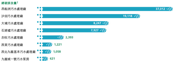 本署轄下主要設施,包括沙田污水處理廠、深井污水處理廠、元朗污水處理廠、西貢污水處理廠、石湖墟污水處理廠、沙灣基本污水處理廠、昂船洲污水處理廠、小蠔灣污水處理廠等,均採用大型太陽能光伏系統供電,預計總發電量可達1,320千瓦。