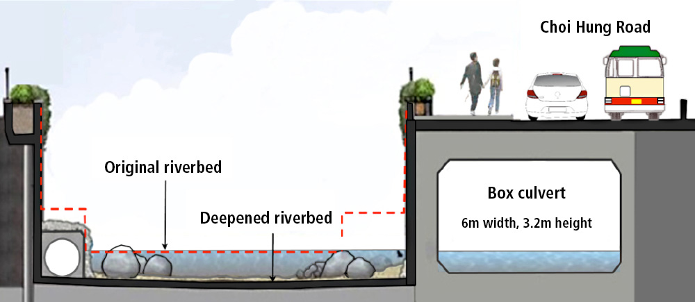 Sectional view of Kai Tak River and its box culvert at Choi Hung Road