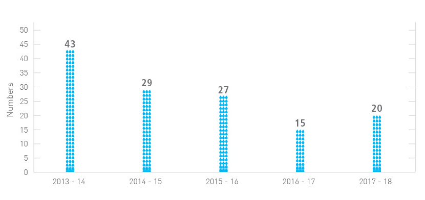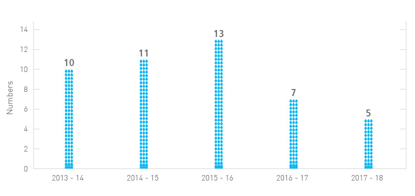 We have also established a number of monitoring committees, namely, the Electrical and Mechanical Branch Safety Management Committee, the Sewage Treatment Works Safety and Health Management Committee, and the Direct Labour Force Safety Management Committee. They are all composed of DSD staff from various disciplines and grades who account for about 3% of the entire staff establishment. Meetings are held regularly to discuss and review OSH-related issues and measures. In 2017-18, there were 5 work injury cases and 20 accident cases.