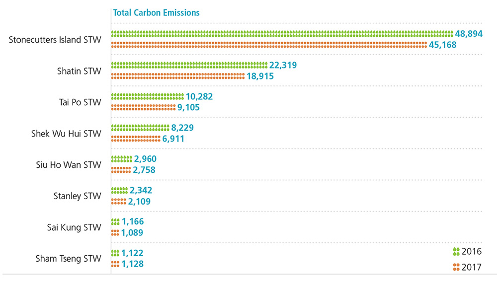 - Optimising operation procedures and replacing equipment with more energy efficient ones at sewage treatment works and sewage pumping stations; and