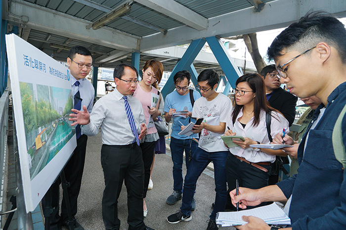 2018年3月27日,本署举行年度传媒简报会,向传媒简介防洪及污水处理工作的最新情况,并带领记者参观于2018年完工的启德河改善工程。