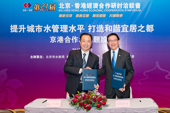 2017年11月28日,第21届「北京‧香港经济合作研讨洽谈会」在香港会议展览中心揭幕。洽谈会同日下午,本署联同北京市水务局、发展局、水务署和环境保护署(环保署)合办「京港合作水专题论坛」,交流两地在供水、防洪和排污等政策的经验。