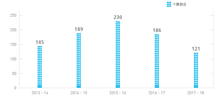 | 已完成的义工服务数目 | 数目 | 21 | 25 | 27 | 20 | 41 |