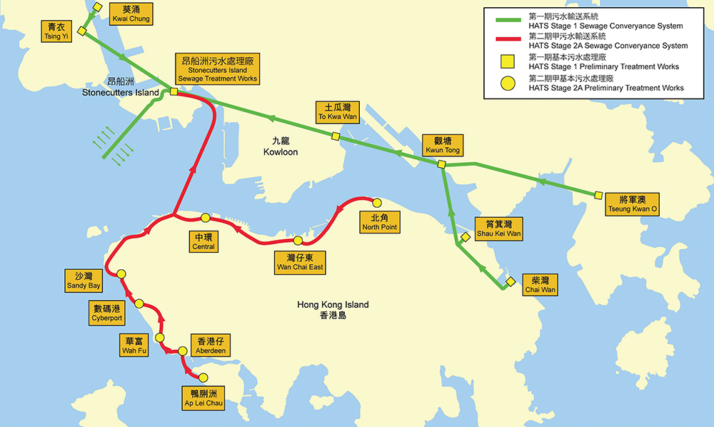 净化海港计划是政府推行的最重要基建项目之一,旨在透过收集和处理维港两岸污水,改善维港水质。计划分两期进行,建造工程历时20载,总费用高达258亿元。计划第一期及第二期甲设施分别于2001年12月及2015年12月全面启用。