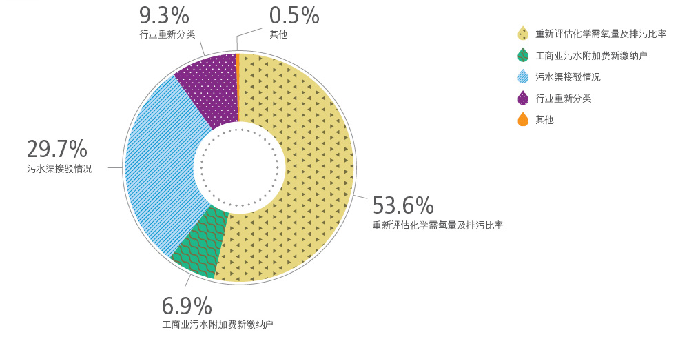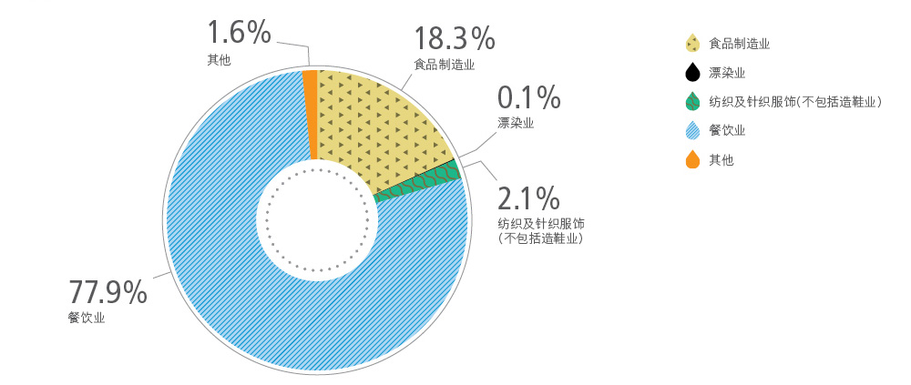 全港约有299万个自来水用户,其中约277万用户须缴付排污费。在工商业用户中,约有28,000用户须缴付工商业污水附加费。工商业污水附加费缴纳户所属行业分布见下图。
