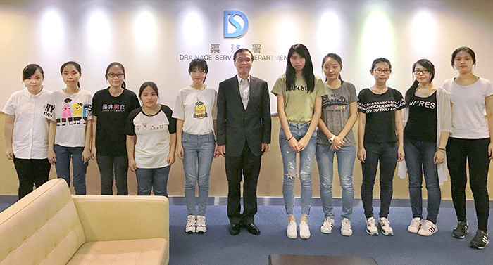 活动当天,本署助理署长简炎辉先生致欢迎辞及介绍本署主要工作。同学其后获安排参观本署防洪设施,并协助师友的「职务」,体验职场实况。