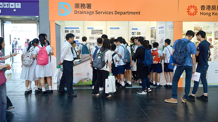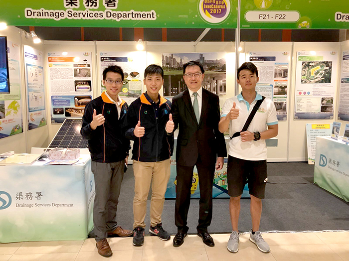 2017年10月21至29日,本署參加在香港科學園舉行的創新科技嘉年華,展出跑馬地地下蓄洪計劃及小蠔灣污水處理廠太陽能發電場兩個工程項目。我們利用工程模型及實體發電板組件,向市民介紹工程項目的創新元素,並推廣本署推行藍綠建設的願景。