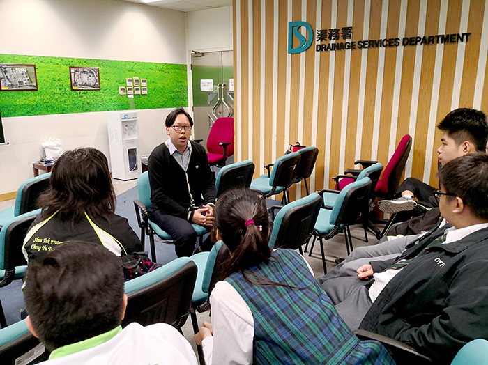 除派發通訊刊物以增加外界對工程的了解外,我們亦專誠安排了黃大仙區議員參觀啟德河改善工程的工地,為他們講述工程進度。此外,本署作為「賽馬會鼓掌.創你程計劃」的參與機構,於2018年3月安排順德聯誼總會鄭裕彤中學的學生參觀啟德河。其間,本署職員除了向同學介紹部門的日常工作及講解啟德河改善工程外,更分享職涯規劃和工作心得。