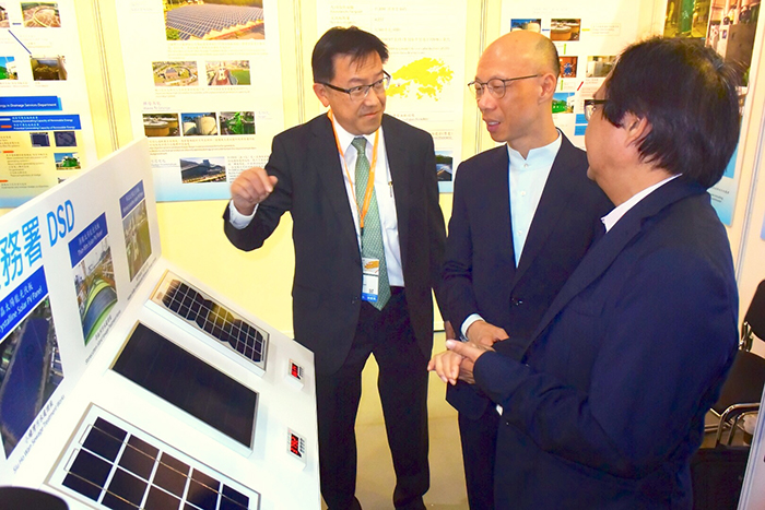 2017年10月26至29日,本署參與在亞洲國際博覽館舉行的第12屆國際環保博覽,設置以「渠務署在應用可再生能源及提升能源效益方面的工作及果效」為題的展區,擺放多幅相關展板、播放介紹小蠔灣污水處理廠太陽能發電場的短片及太陽能發電場的實時運作資料,以及展示該發電場與各地常用的多種太陽能光伏板。參觀者透過觀看展板、欣賞短片和聆聽現場同事講解,進一步了解本署應用可再生能源,包括太陽能和在污水處理過程中產生的生物氣的情況,以及各項提升設施能源效益的技術。