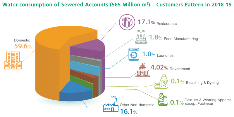 | Number of water accounts liable to pay sewage charge | No.(in thousand) | 2,663 | 2,689 | 2,735 | 2,765 | 2,818 |