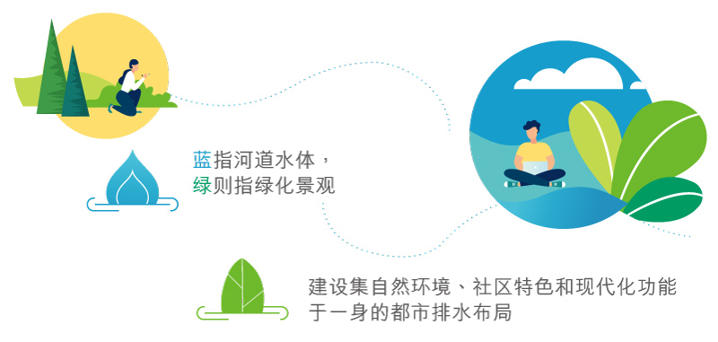 渠务署在多项工程中积极引进绿化和生态保育元素的活化水体概念,例如在河道两旁或河道种植、营造天然溪涧环境、保育河道生态、促进各类生物繁衍, 以及引入园景设计等务求在有效排水的同时,亦以促进绿化、生物多样性及美化环境为目标。透过蓝绿建设,我们希望为市民建设草木繁茂和水景优美的环境,让市民有更多机会亲近水体,珍惜天然资源。