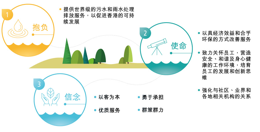 本署于1989年成立,为香港特别行政区政府发展局辖下9个部门之一。我们一直与时并进,为香港提供专业卓越的防洪及污水处理服务。我们的「抱负、使命和信念」贯彻可持续发展理念,可见我们决心推动香港的可持续发展,以应对气候变化及城市发展带来的挑战。