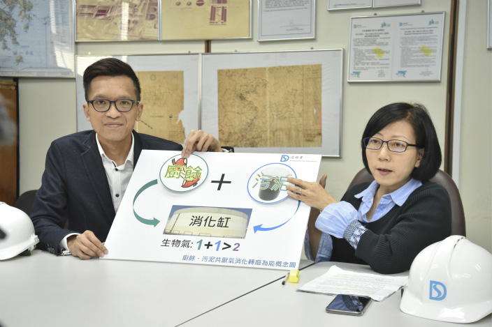 「厨余、污泥共厌氧消化试验计划」专访高级机电工程师黎玮筠女士(右)及机电工程师张键权先生(左)。专访已于2019年2月11日刊出