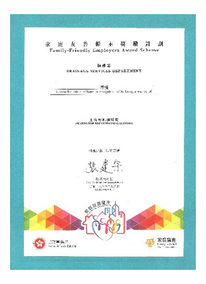 渠务署致力为正在喂哺母乳的雇员提供适合及方便喂哺母乳的环境,获家庭议会颁发「2017/18年度支持母乳喂哺奖」。