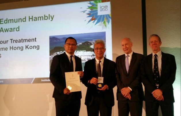 渠务署「净化海港计划」在可持续发展方面成绩卓越,获颁2018年度英国土木工程师学会Edmund Hambly奖章。