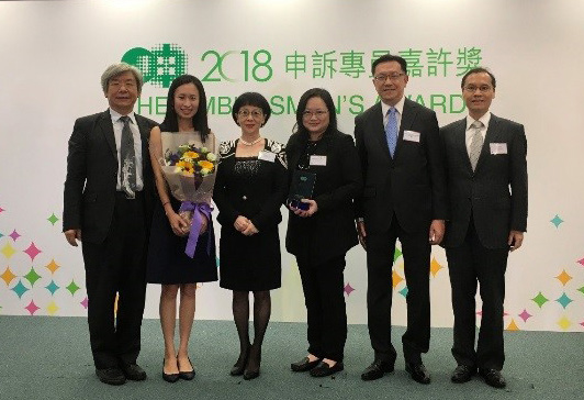 渠务署工程师邓加月女士(左二)及崔咏霞女士(右三)荣获「2018年申诉专员嘉许奖」公职人员奖项。