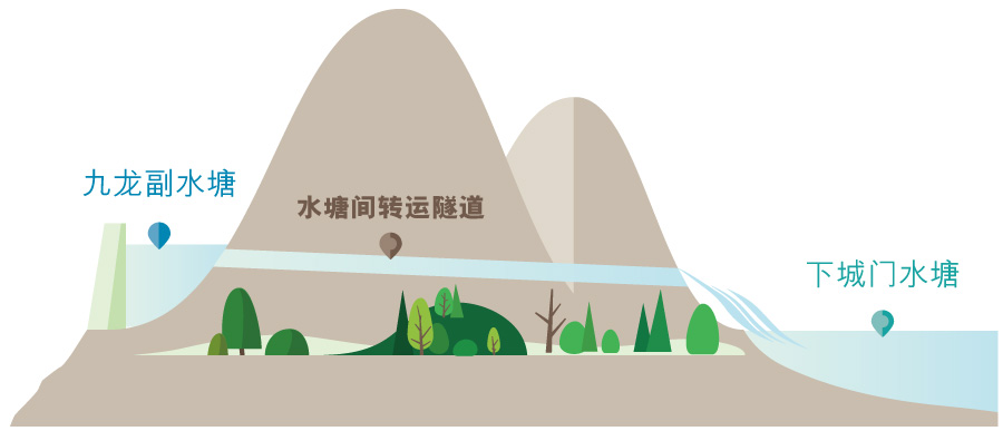 为提升西九龙的防洪能力以应对气候变化带来的挑战,我们正在兴建一条全长约2.8公里的输水隧道连接九龙副水塘与下城门水塘,把九龙水塘群接收的地面径流转运至下城门水塘。此水塘间转运隧道计划可额外提供每年约340万立方米集水量,达到防洪及保护水资源的双重目标。