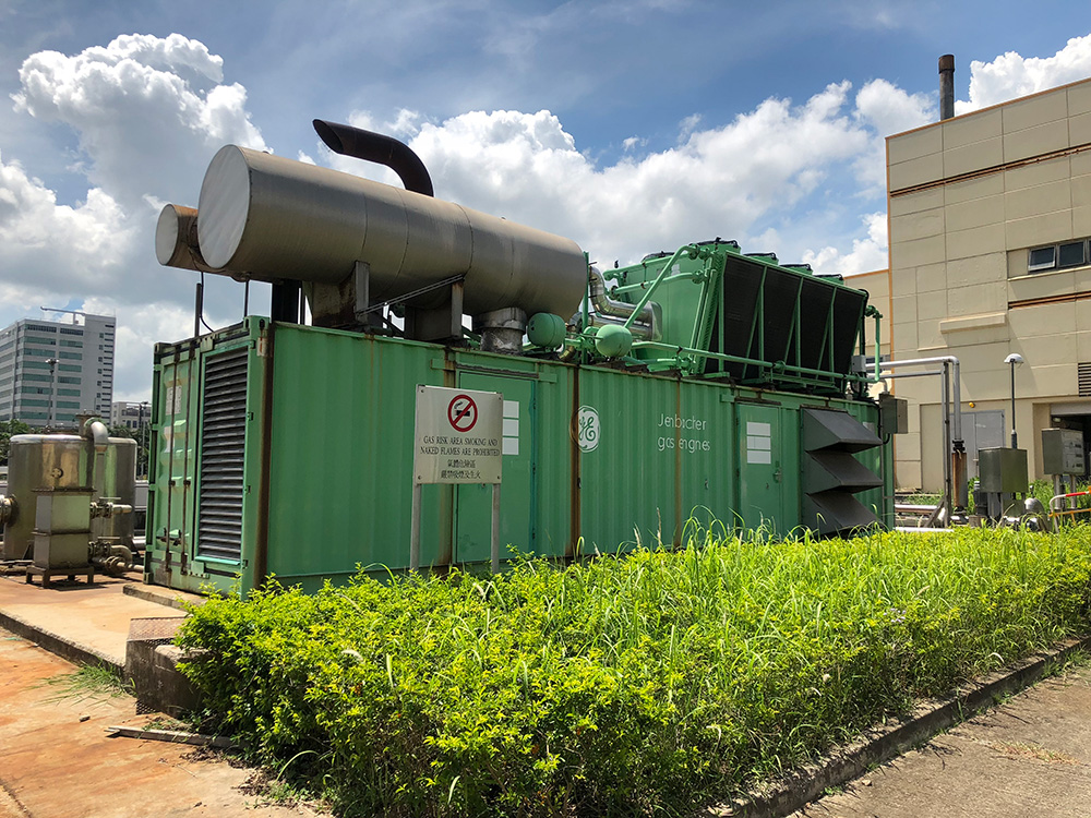 污水處理過程產生的污泥會在厭氧消化期間釋出生物氣。生物氣約含65%甲烷(其餘成分主要為二氧化碳),屬於可再生能源。我們利用電熱聯供發電機和渦輪發動機燃燒生物氣,生產電能和熱能供廠房使用。2018-19年度,沙田、大埔和石湖墟污水處理廠共5台電熱聯供發電機的總發電容量約為3.6兆瓦;而沙田和元朗污水處理廠2台渦輪發動機的總發電容量則為280千瓦。年內,各污水處理廠的生物氣總發電量相等於約2,700萬度電。