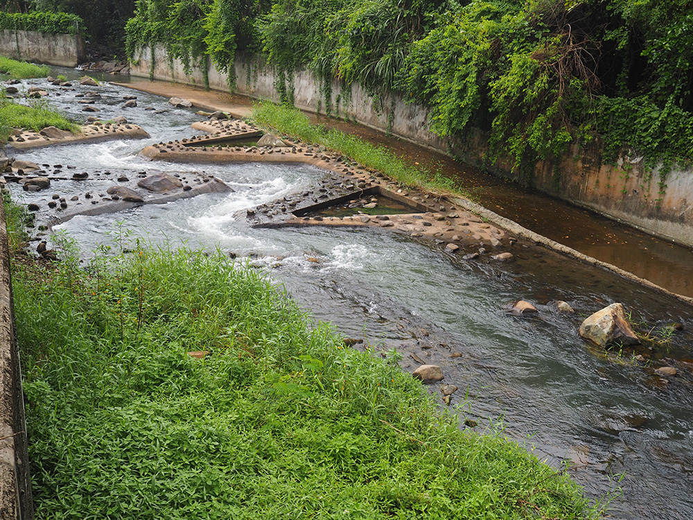 除了在河床加設魚洞穴及導流石以形成靜水區,供魚群在河道棲息外,我們更加添河邊花槽、設置仿石種植盆及增建河床種植槽,栽種不同品種的植物,以增強河道的綠化效果。活化後的啟德河綠意盎然,我們更經常見到雀鳥及魚類於該河道棲息。