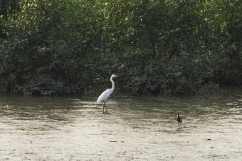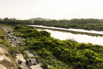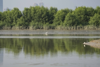 In order to integrate the construction works with the surrounding landscape and conserve the natural habitat, the Drainage Services Department has introduced environmental friendly design into the project, including the preservation of the natural river bed at downstream, laying rip rap embankment (random rubbles forming side-slop), planting shrubs, trees and more than 120,000 mangrove seedlings alongside embankment.