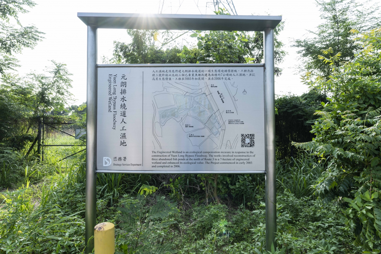 The project of Yuen Long Bypass Floodway includes the construction of a 7 hectares of engineered wetland near the downstream. Greening works carried out along the Bypass Floodway and in the engineered wetland include planting of 13,000 trees, 140,000 shrubs and 550,000 herbaceous plants.