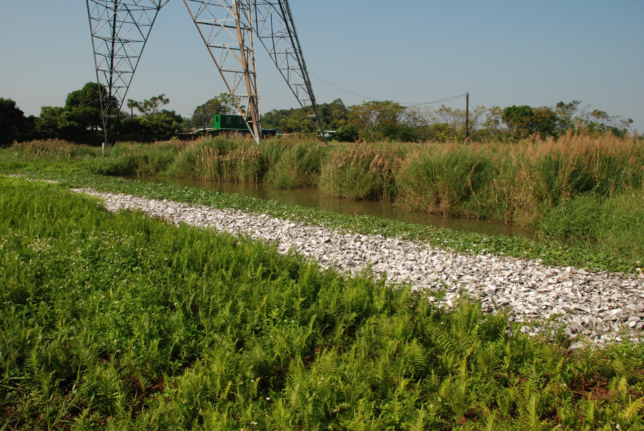 Yuen Long Bypass Floodway Engineered Wetland mainly consists of 3 main water ponds, a seasonal shallow pond and a permanent shallow pond. There are also crushed brick and oyster shell ponds, reed beds and a deep water pond within the wetland. The dry weather flow of the Bypass Floodway, after purified by passing through the oyster shells, crushed bricks and reed bed, flows into the engineered wetland to establish an ecologically enriched habitat for the wild birds, amphibians and dragonflies.
