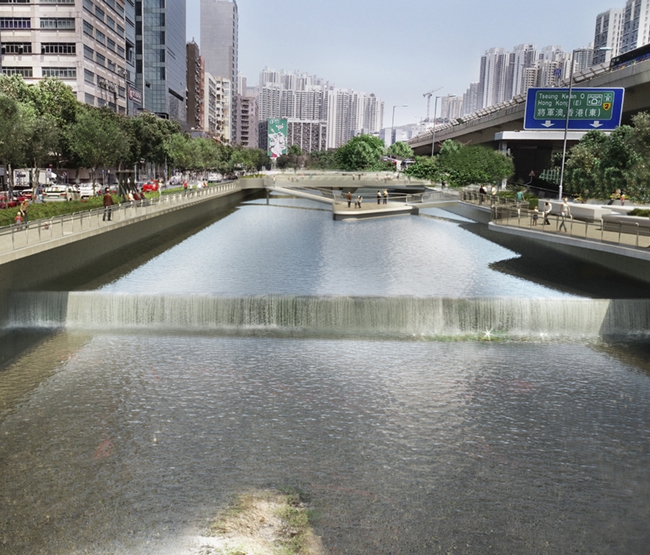 Tsui Ping River, previously named as King Yip Street nullah, is located in the center of Kwun Tong District abuts the Kwun Tong Business Area and residential area. To complement the Energizing Kowloon East Initiative in transforming Kowloon East into another Core Business District for the city, the government put forward the concept of revitalizing King Yip Street Nullah into a unique river with environmental, ecological and landscaping upgrading works. The project comprises the transformation of the existing 1km long nullah alongside King Yip Street, King Yip Lane and Tsui Ping Road into Tsui Ping River with hydraulic capacity, environmental, ecological and landscaping upgrading. To cope with the objective of the revitalization, the project will also beautify the adjacent pedestrian walkways, enhance the connectivity with the pedestrian network and add diversity to the Kwun Tong District.