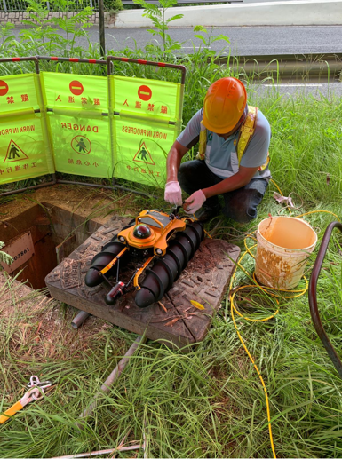但部分位於渠道系統較下游位置的渠道,因已收集上游系統的大量雨水/污水,或受潮汐影響,渠道內的水位較深,如果利用「CCTV車仔」的話,攝影鏡頭便會被水淹浸,無法清楚拍下渠道的情況,以致未能了解渠道的結構是否有損壞或是否有沉積物積聚。