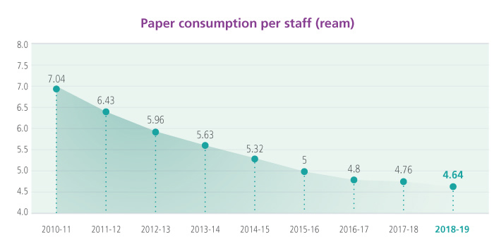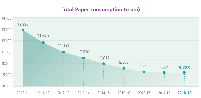 Note: Data as of 31 March 2019 for total paper consumption (ream) and paper consumption per staff (ream)
